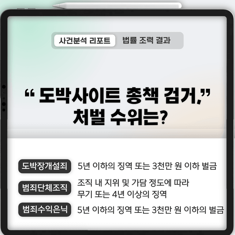 범죄단체조직죄 적용에 대한 다툼: 검찰은 대형 도박 조직에 대해 형법 제114조(범죄단체 등의 조직)를 적용해 가중 처벌을 시도합니다. 그러나 조직 내의 엄격한 위계질서나 통솔 체계가 실질적으로 존재했는지, 아니면 단순한 이익 공유 관계에 불과했는지를 법리적으로 다투어 부당한 형량 상승을 막아야 합니다.