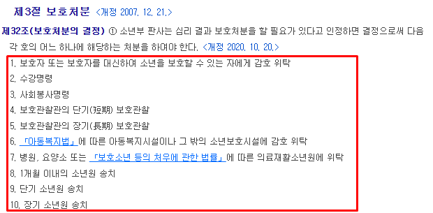 (소년법상 보호처분은 아래와 같이 구성되어 있습니다)
