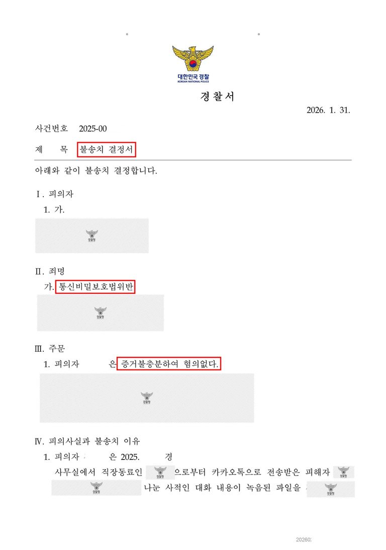 의뢰인은 공무원 신분으로 업무를 보던 중 다른 공무원의 비밀에 관한 이야기를 듣고 이를 녹음했다는 이유로 고소당하였습니다.