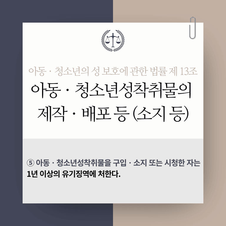 ⑤ 아동ㆍ청소년성착취물을 구입ㆍ소지 또는 시청한 자는 1년 이상의 유기징역에 처한다.