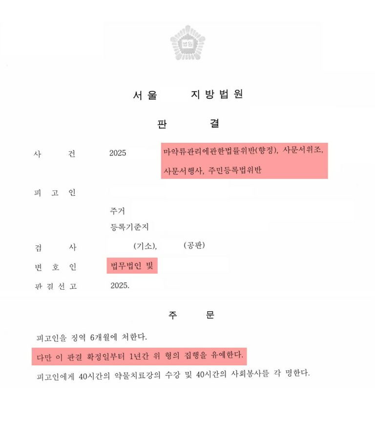 법무법인 빛의 조력 - 마약류 대리 처방이지만, 실형은 피했습니다