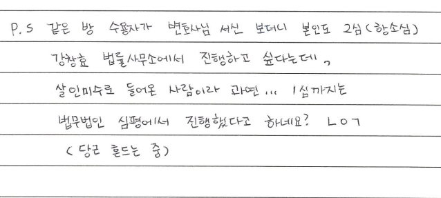 같은 방 수용자가 변호사님 서신 보고 본인도 2심(항소심)은 강창효 법률사무소에 맡기고 싶다는데, 과연...
