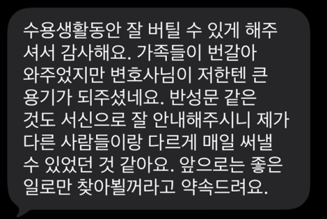 최근 구치소에서 연락을 주시는 분들이 많아 올해는 구치소를 유독 더 자주 오가게 될 것 같은 예감이 들어 짧게 남겨두고 싶었습니다.