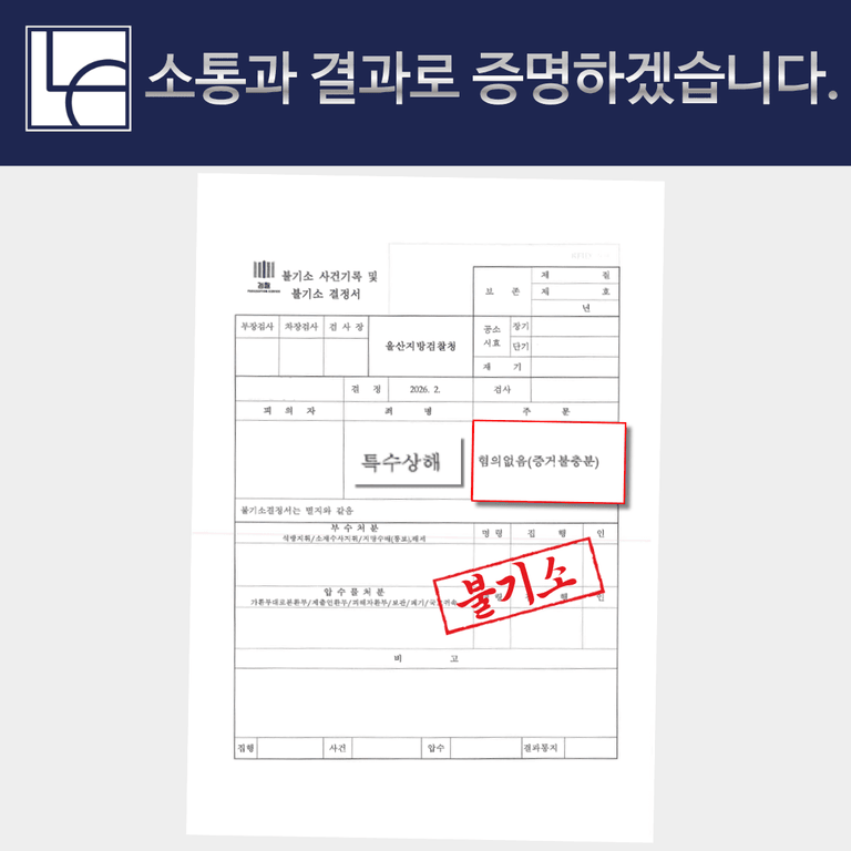 검찰은 울산형사전문변호사 법무법인 나우의 주장을 모두 받아들여 의뢰인의 특수상해 혐의에 대하여 [혐의없음 불기소] 처분을 내렸습니다.