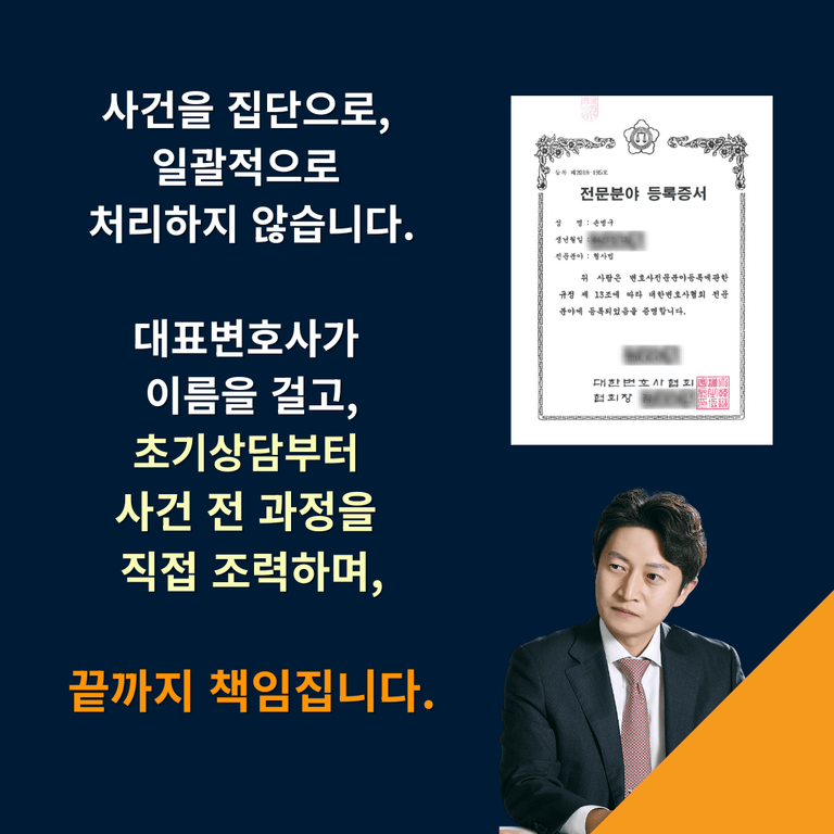 전문성에 대한 신뢰를 잃지 않기 위해, 매 사건 전력을 다해 임하고 있으며, 초기 상담부터 사건 전 과정을 직접 수행하고 있습니다.