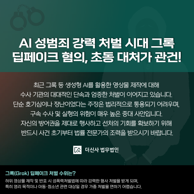 최근 AI 인공지능 기술이 비약적으로 발전함에 따라 그록 딥페이크 같은 영상 합성 도구가 범죄의 수단으로 악용되는 사례가 눈에 띄게 늘고 있습니다. 가벼운 호기심이나 장난 삼아 시작했던 딥페이크 이미지 생성, 혹은 온라인 공간에서의 부적절한 대화가 실제 형사 사건으로 번져 수사 기관의 연락을 받는 분들이 많아지는 추세입니다.