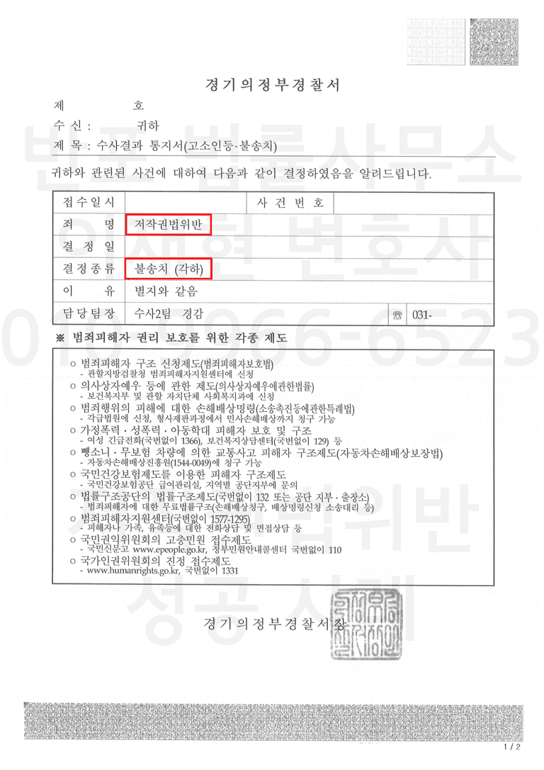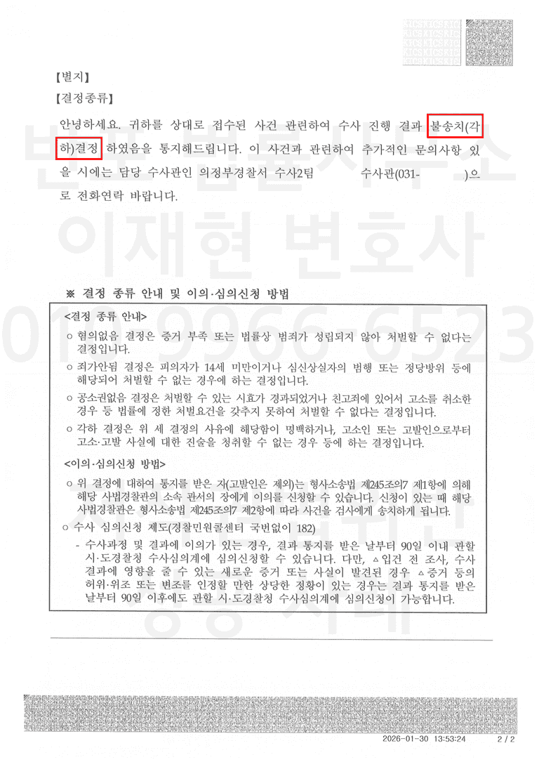 그 결과 경찰 단계에서 불송치 각하 결정으로 사건이 종결되었습니다.