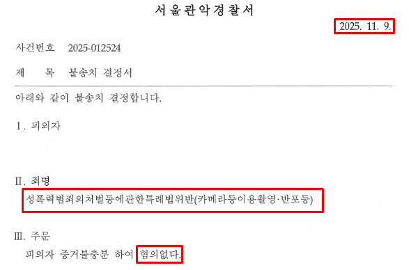이 사건은 결국 혐의없음으로 종결되었습니다!