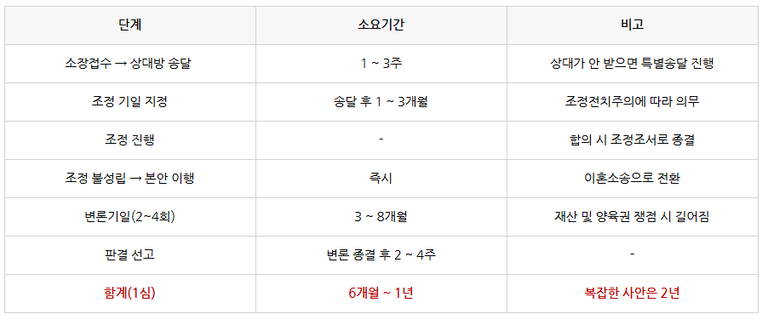가정폭력 이혼소송 기간은 조정 포함 6개월~1년, 복잡하면 2년까지 걸립니다