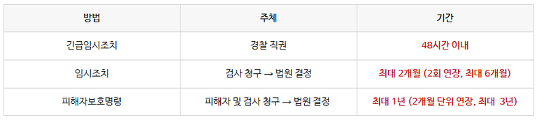 → 법원 임시조치 결정 (접근금지 기간: 최대 2개월, 2회 연장 가능)