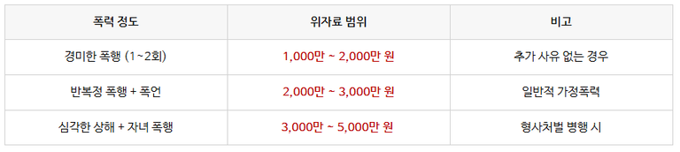 가정폭력으로 인한 이혼 위자료는 일반 이혼보다 높게 산정됩니다.