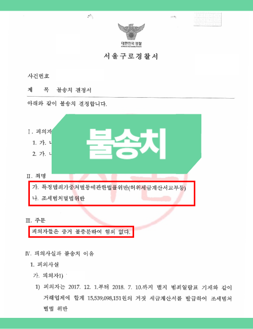 [성공 사례] 250억 규모 허위세금계산서 혐의, 불송치 결정