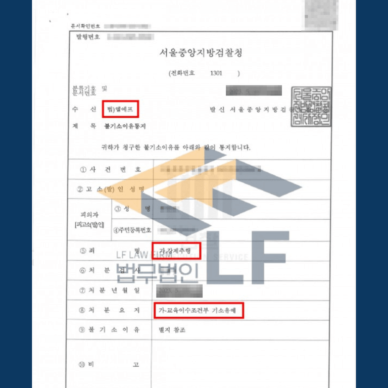 의뢰인은 검찰로부터 기소유예 처분을 받을 수 있었습니다.