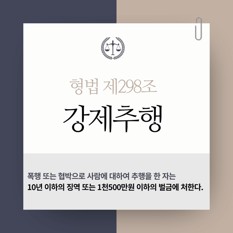 폭행 또는 협박으로 사람에 대하여 추행을 한 자는 10년 이하의 징역 또는 1천500만원 이하의 벌금에 처한다.