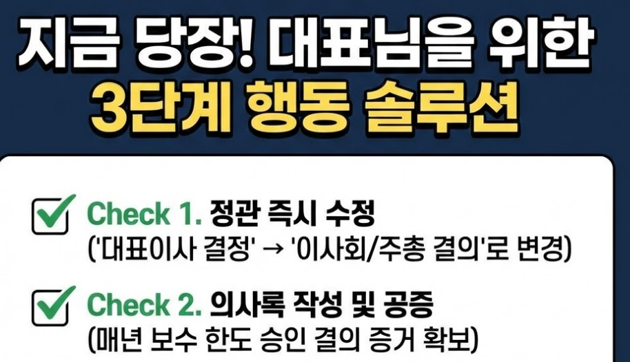 대다수의 중소기업이 실질적으로 1인 주주 혹은 가족 중심의 폐쇄적인 소유 구조를 가지고 있는 구조 속에서, 회사의 돈과 오너의 돈의 경계는 모호해 지기 쉽습니다. 특히 정관이나 주주총회의 결의 없이 경영자의 재량이나 관행이라는 명목으로 만연히 이사의 보수를 지급하는 경우가 많습니다.