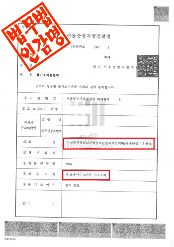 ○ 보호관찰소의 성폭력재범방지교육을 이수할 것을 조건으로 기소를 유예한다.