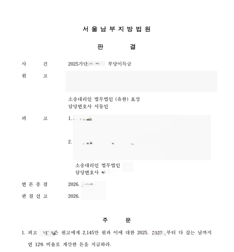 저는 즉각 입금 받은 자를 피고로 하여 민사소송 부당이득반환청구소송을 제기하였고 법원은 원고 승소 판결을 선고하여 의뢰인은 피해액을 반환받았습니다.
