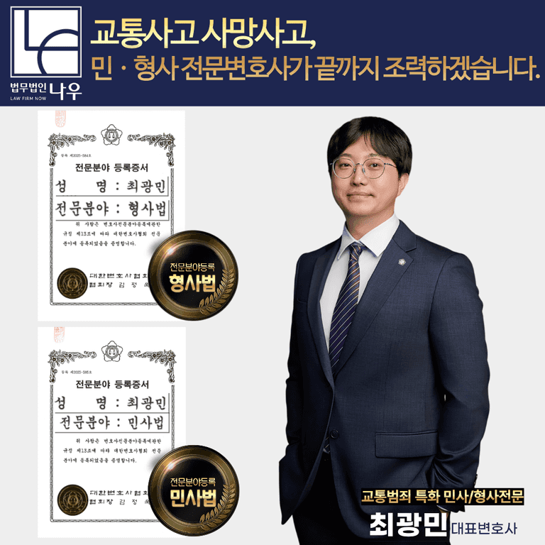 따라서 교통사고로 인한 사망사고의 경우 민ㆍ형사 전문변호사와 함께 체계적이고 강력한 통합 대응을 진행하시는 것이 필수적입니다.