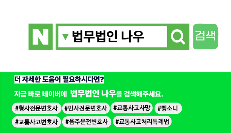 현재 음주운전 및 교통사고 등 교통범죄 연루로 인하여 도움이 필요하시다면 혼자 고민하며 힘들어하지 마시고 법무법인 나우에 언제든 편하게 문의주시길 바랍니다.