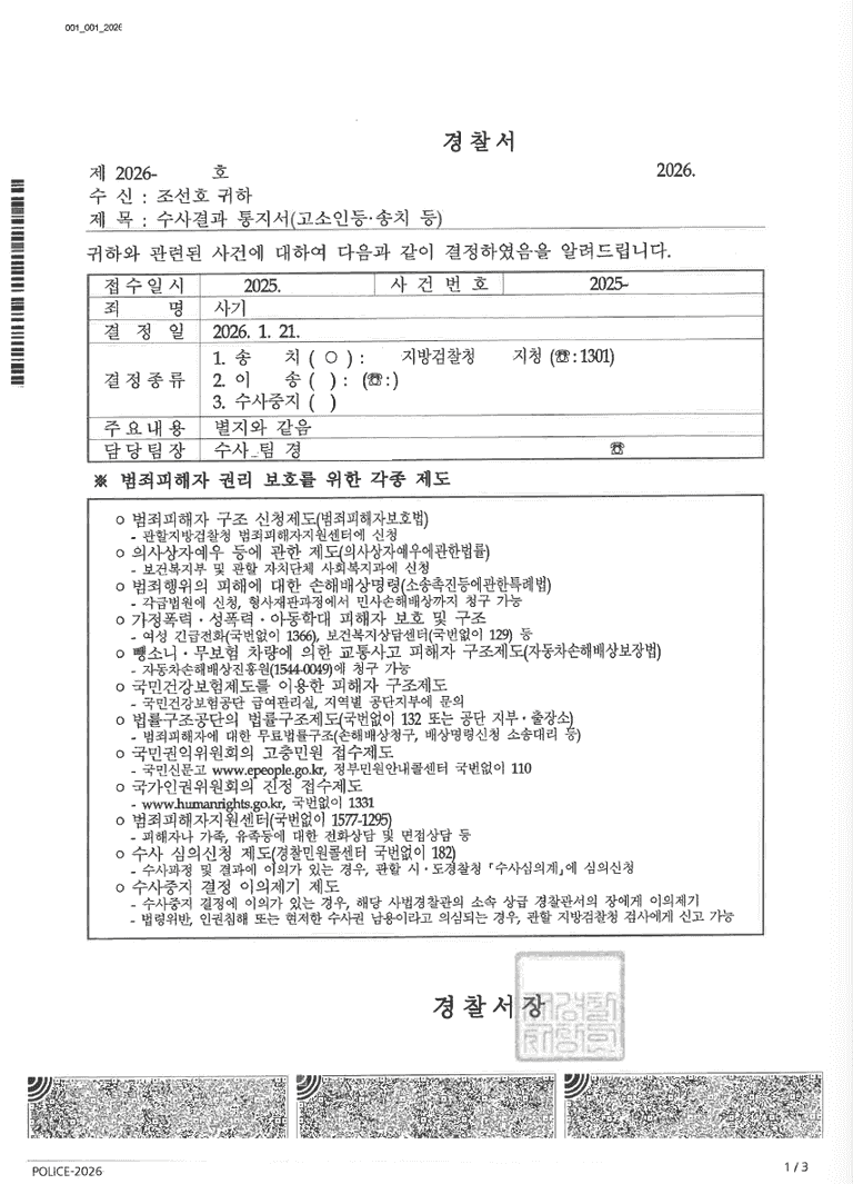 경찰 단계에서 검찰 송치를 이끌어 낸 사건입니다.