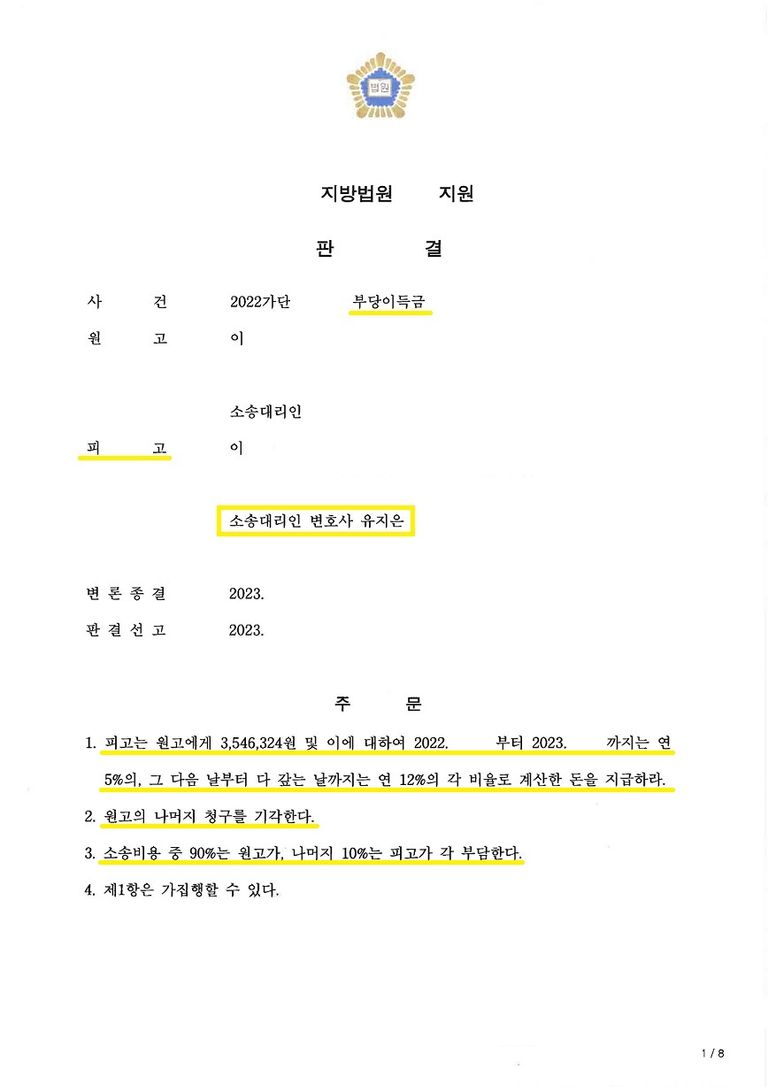 결국, 저희는 부당이득으로 약 350만 원만 반환하며 성공적으로 재산을 방어할 수 있었습니다.