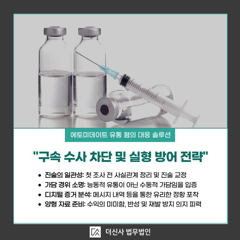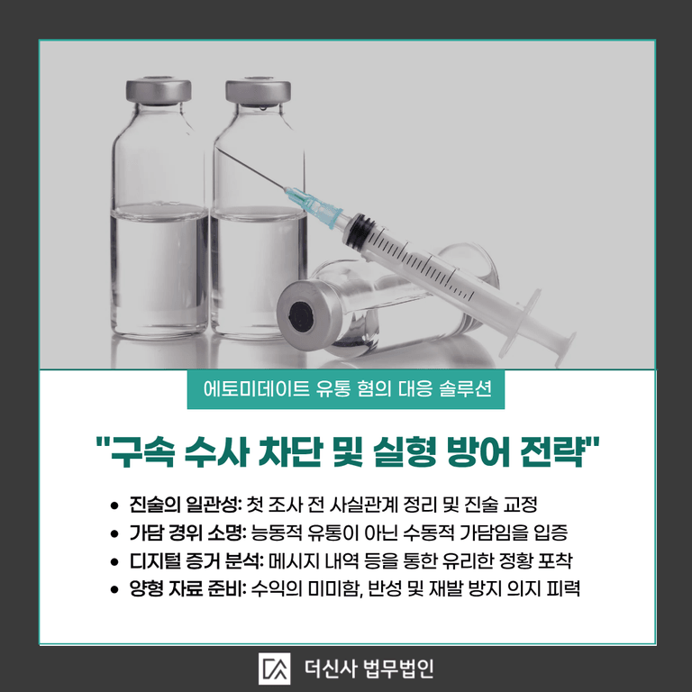 유통 조직은 점조직 형태로 운영되기 때문에, 수사기관은 하부 조직원을 통해 상선을 파악하려 하며 이 과정에서 피의자를 강하게 압박합니다. 특히 에토미데이트나 프로포폴 같은 약물을 불법 유통망을 통해 거래한 경우, 보건범죄 단속법까지 적용되어 가중처벌을 받을 수 있습니다.