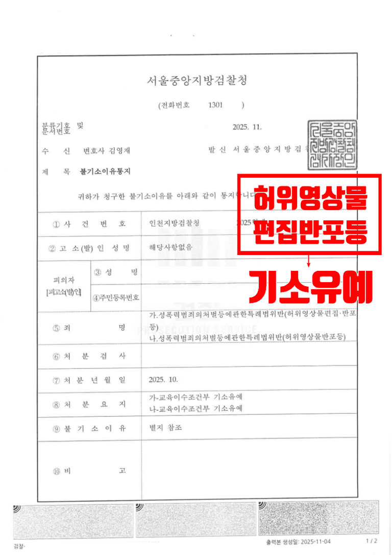 저희 로펌은 의뢰인이 상습적으로 합성물을 유포한 것은 아니고 우연히 참여하게 된 텔레그램 대화방의 분위기에 휩쓸려 우발적으로 과거 제작하였던 2건의 합성물을 유포하였던 것이며, 유포 후 즉시 텔레그램을 탈퇴한 뒤 자발적으로 갖고 있던 합성물을 전부 삭제하였고 본인의 잘못을 깊이 뉘우치고 있는 점 등을 풍부한 양형자료를 포함한 변호인 의견서를 통해 표명하며 기소유예 처분을 목표로 적극적으로 변론하였습니다.