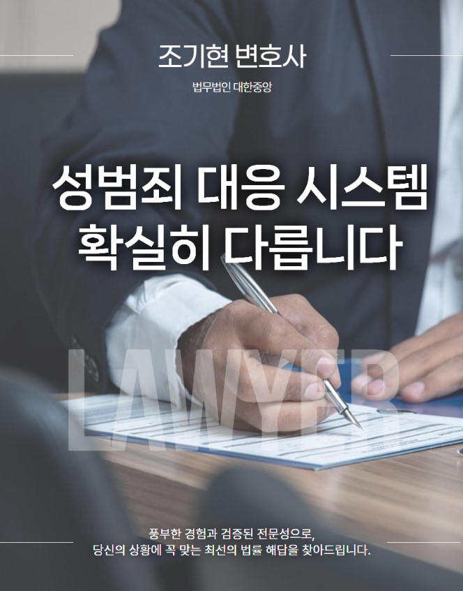 안녕하세요. 법무법인 대한중앙 대표, 성범죄전문변호사 조기현입니다.