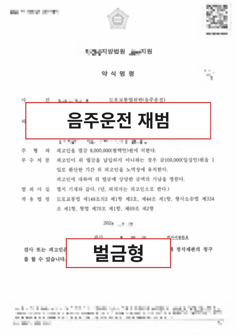 → 결과: 음주운전 재범 사건, 약식명령 벌금형으로 종결