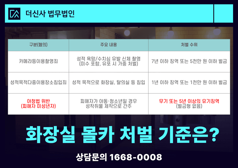 화장실 내 범죄는 보통 두 가지 혐의가 동시에 적용되어 처벌 수위가 가중됩니다.