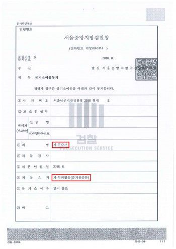 인천지방검찰청에서 이 사건에 대해 다음과 같이 처분을 하였습니다.