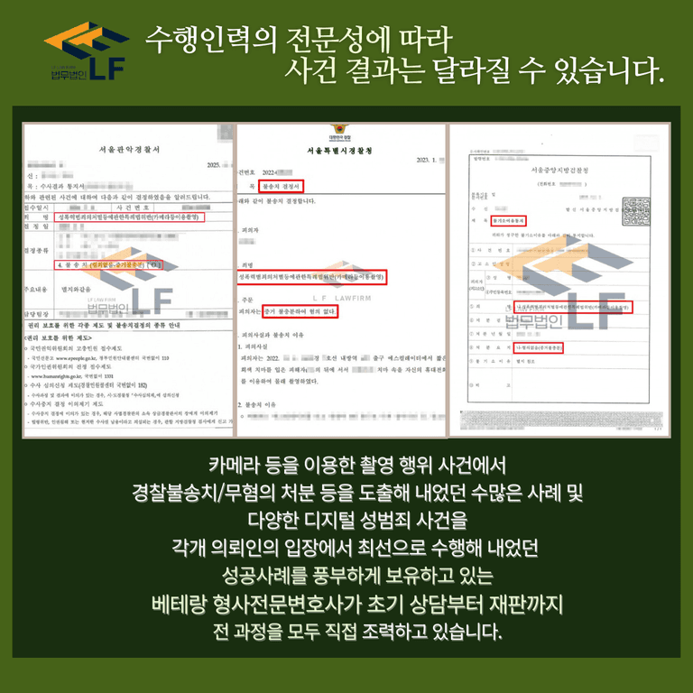 제가 보유하고 있는 전문성 및 역량, 무엇보다 카메라등이용촬영죄를 성공적으로 해결해 내었던 경험이 여러분의 고민 해소에 상당한 도움이 될 수 있을 것이라 생각합니다.