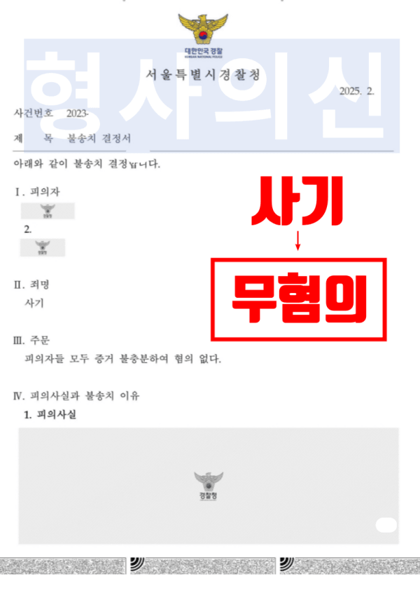 위와 같은 취지의 변호인의견서를 제출하여 고의 및 기망의 부존재를 중심으로 무혐의를 적극 주장하였습니다.