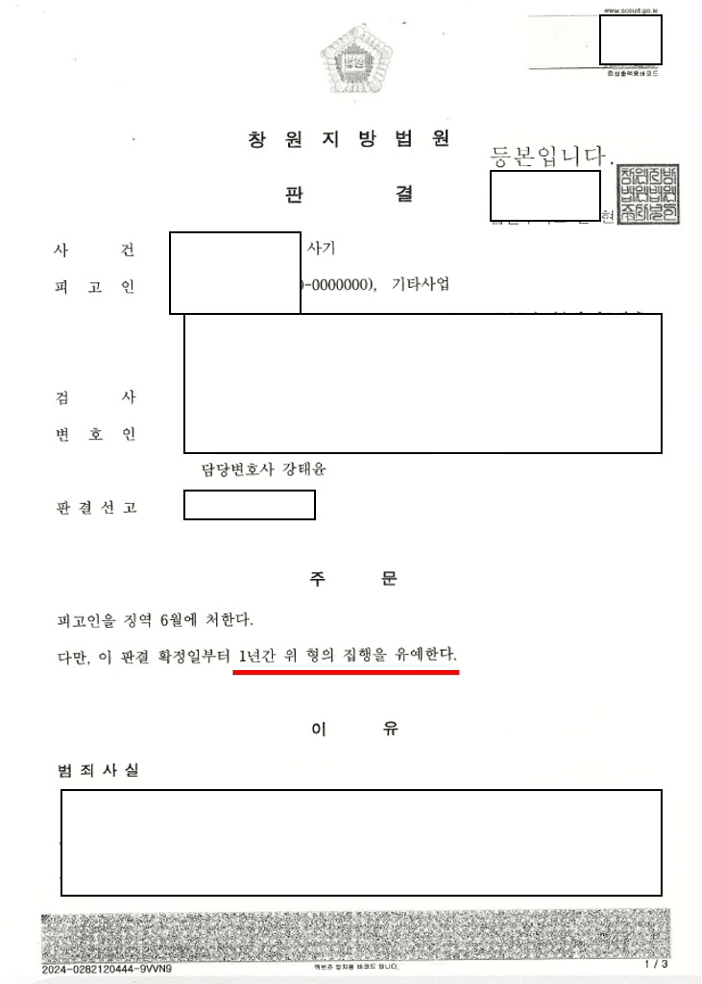 이번 사건 역시 무죄를 끝까지 주장했다면, 사기죄 집행유예가 아닌 실형 선고 가능성이 높았습니다.