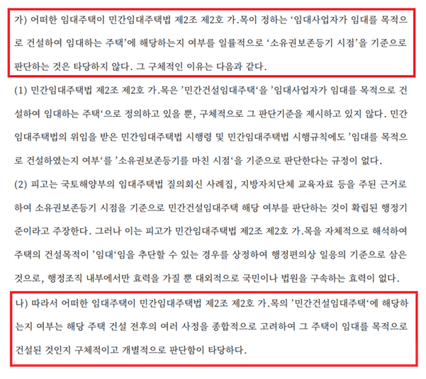 소유권보존등기 전 임대사업자 등록 여부라는 획일적인 기준에 따라 판단하고 있기 때문인데요
