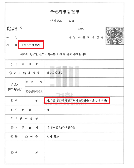 그 결과 의뢰인에 대해 불기소 결정이 내려졌습니다.