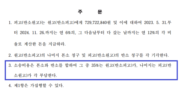 소송비용을 누가 얼마씩 부담할 것인지는 판결문에 구체적으로 명시됩니다.
