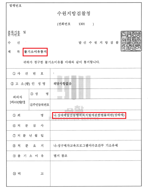 다행히도 사건 초기부터 전략적으로 대응하여 성매매가 한 번이 아니었지만 기소유예를 받을 수 있었습니다.