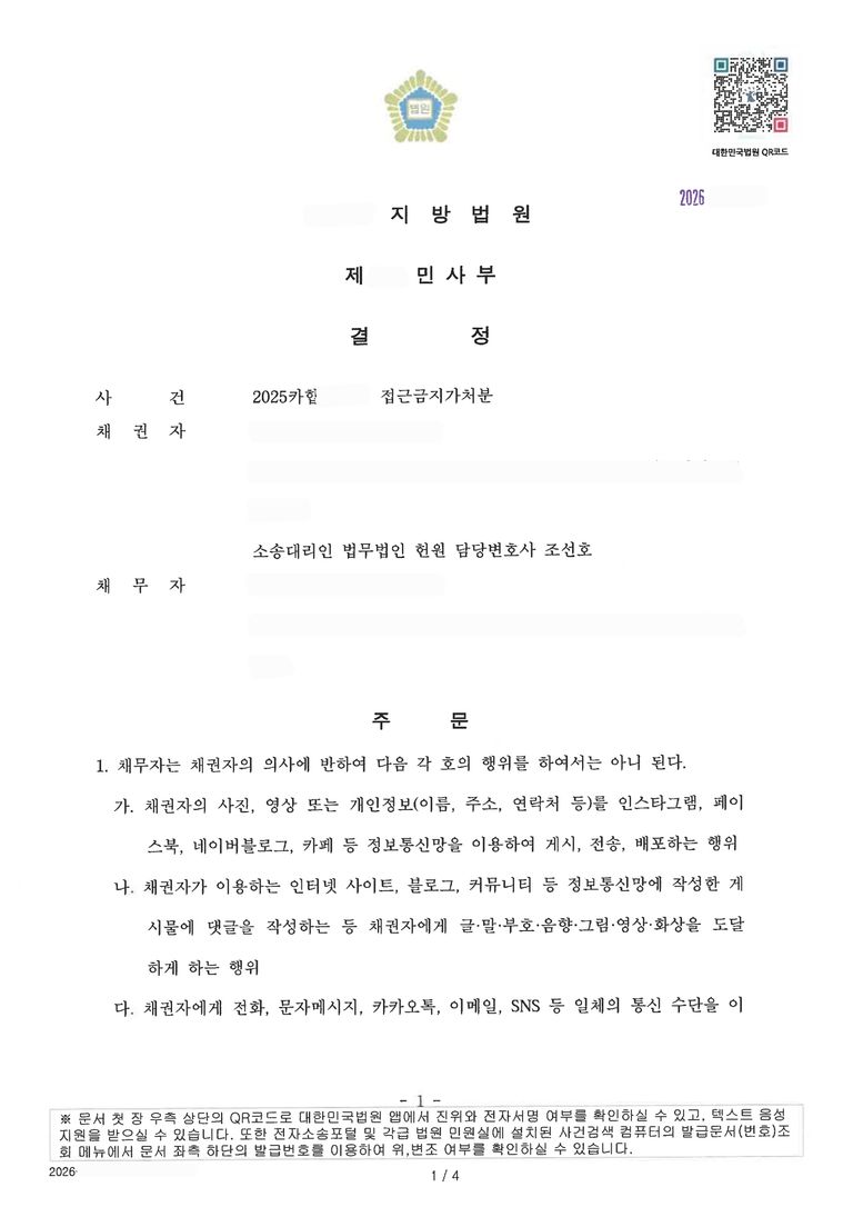 ![[민사][가처분] 상대방의 지속적인 연락이나 괴롭힘이 있다면](/_next/image?url=https%3A%2F%2Fd2ai3ajp99ywjy.cloudfront.net%2Fuploads%2Ftitleimage%2Foriginal%2F5baca36f5f21f78739e44508-original.jpg&w=3840&q=75)