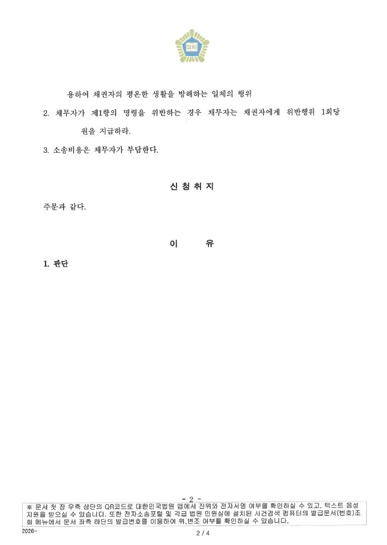결국 가처분 신청을 통해 상대방이 더 이상 같은 행동을 하지 못하도록 하였습니다.