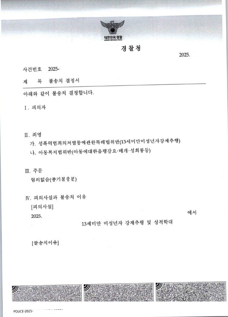 그 결과 경찰에서 불송치 결정을 받을 수 있었습니다.