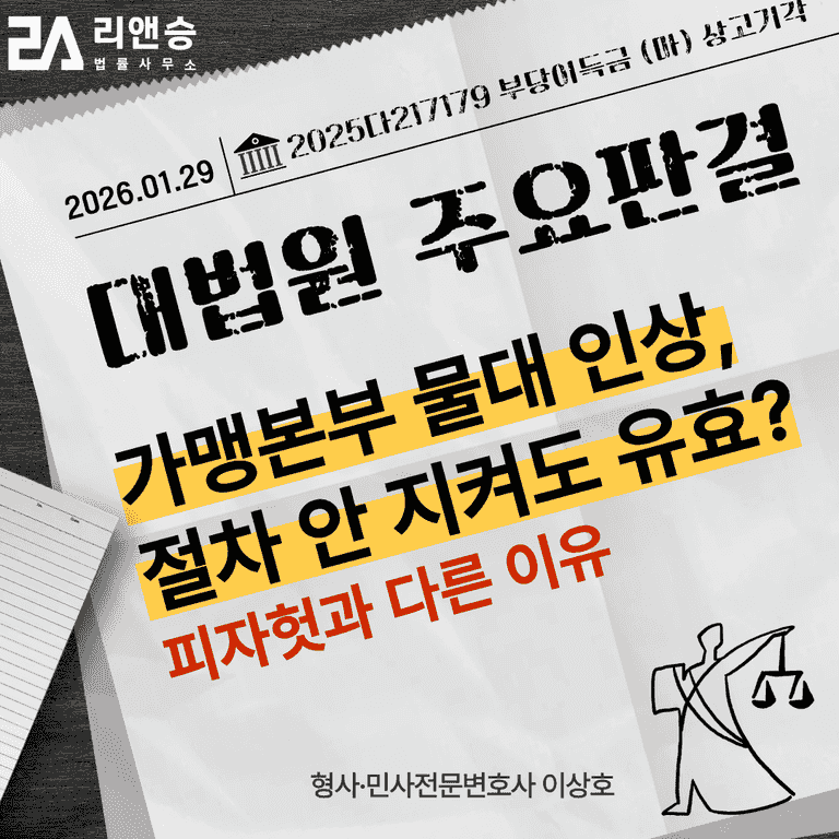 피자헛 판결과 비교한 대법원 판단 (대법원 2026. 1. 29. / 2025다217179)