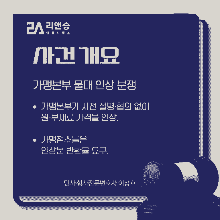 프랜차이즈 물대 인상 분쟁은 “가격이 올랐다/안 올랐다”의 문제가 아니라, 계약이 요구하는 절차와 사후 대응의 기록이 결론을 좌우하는 유형입니다.