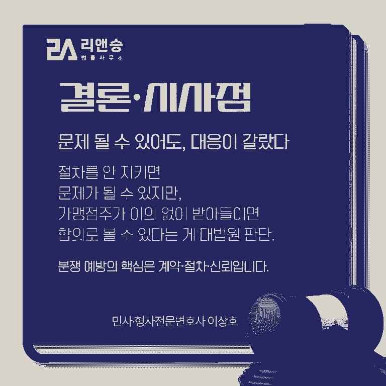 → 그리고 인상 이후 가맹점주의 대응 방식(묵시 동의로 평가될 위험)이 결론에 큰 영향을 줌