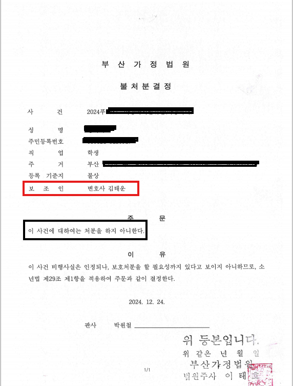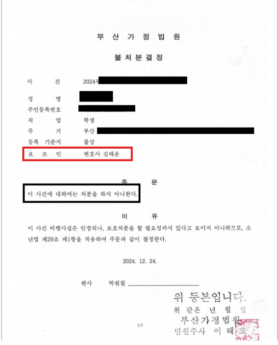 불처분결정이라는 중대한 결과를 이끌어냈습니다.
