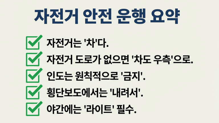 이를 위반해 보도를 주행하다가 보행자와 충돌한 경우, 자전거 운전자에게 상당한 과실이 인정될 가능성이 높습니다. 사고의 직접 원인이 상대방에게 있더라도, 통행 방법 위반은 과실 비율에 반영됩니다.