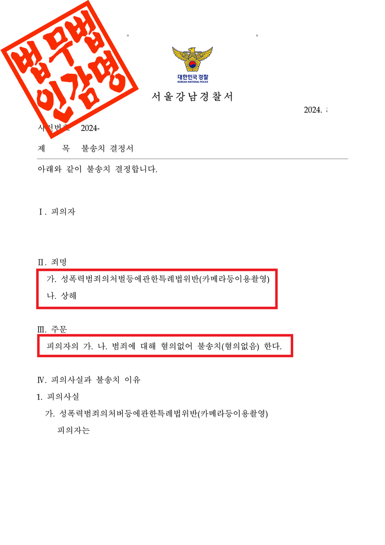 서울강남경찰서는 이 사건에 대해 다음과 같은 사유로 불송치 결정을 하였습니다.