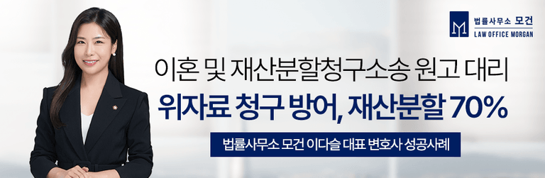 법률사무소 모건의 이다슬 대표 변호사는 대한변호사협회 등록 이혼전문변호사로서, 상담부터 전 과정을 대표 변호사가 꼼꼼하게 진행하며 실무사례를 통해 쌓아온 경험과 노하우로 최선의 결과를 이끌어내는데 노력하고 있습니다. 상담이 필요하신 분들은 법률사무소 모건으로 문의하시기 바랍니다.