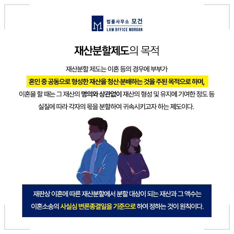 또 재산분할 대상에 포함되어야 하거나, 포함되지 않아야 하는 재산에 대한 명확한 분별도 필요하므로, 경험많은 종로이혼전문변호사의 조력이 중요합니다.