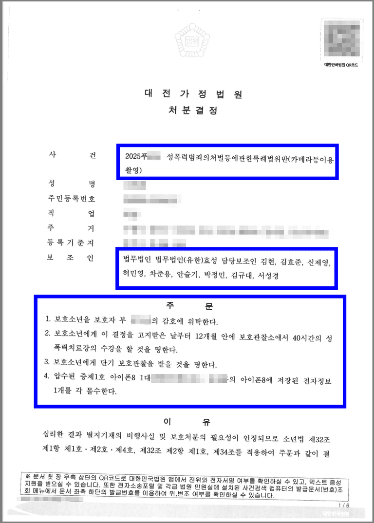 형사처벌 위기에서 ‘소년부 보호처분’으로 종결한 사례